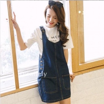 ZUCA”S - 顯廋前後雙口袋造型吊帶牛仔裙。 S/M/L【A-0787】