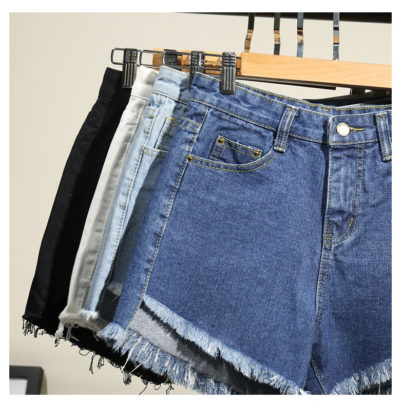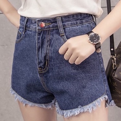 ZUCA”S - 高腰牛仔短褲百搭顯瘦 短褲 純色 鬚鬚 流蘇。S/M/L 【A-1103】