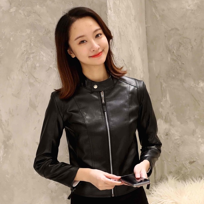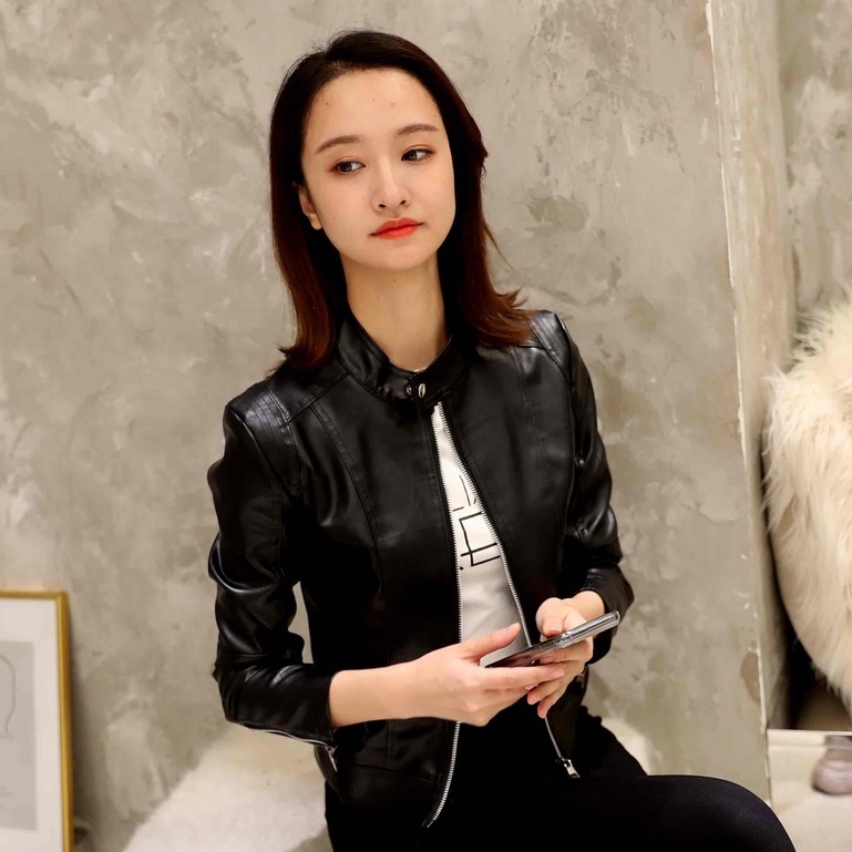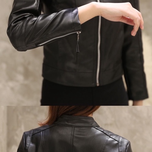 ZUCAS - 韓版皮衣短款立領拉鍊黑色機車外套 - A-322
