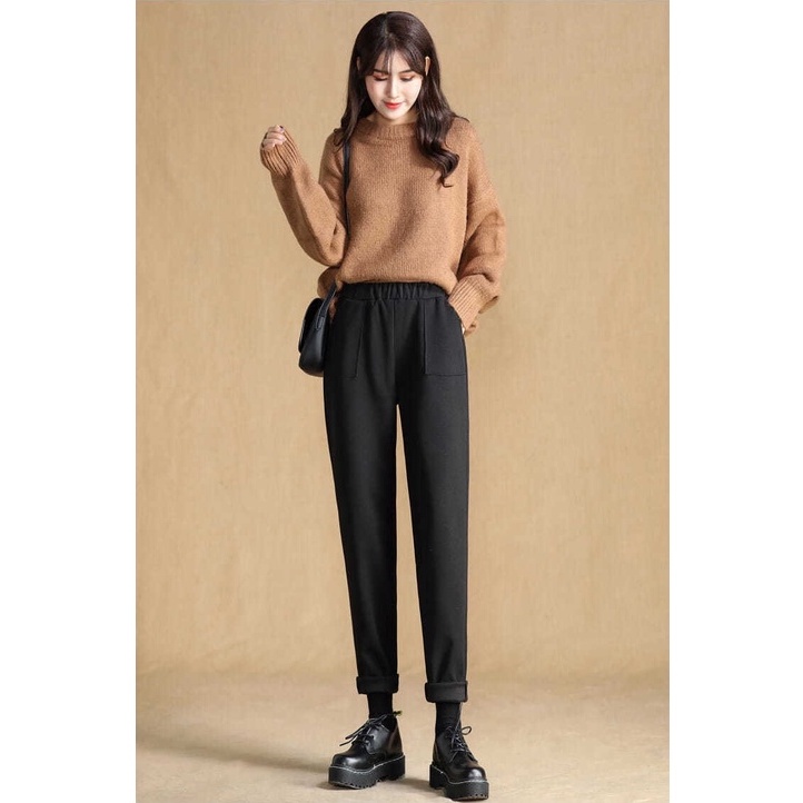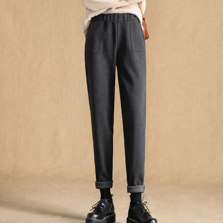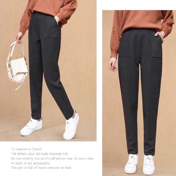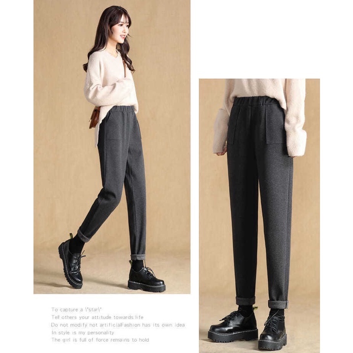 ZUCAS~(現貨)保暖休閒褲顯瘦高腰哈倫褲 - A-5009