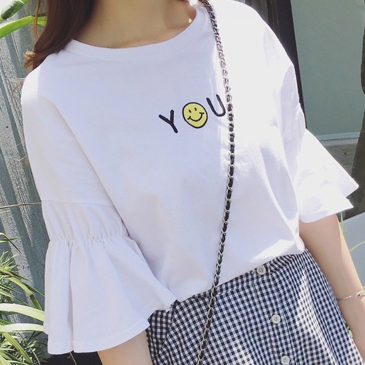 ZUCAS~(現貨出清)卡通字母印花荷葉袖T恤 - T-090