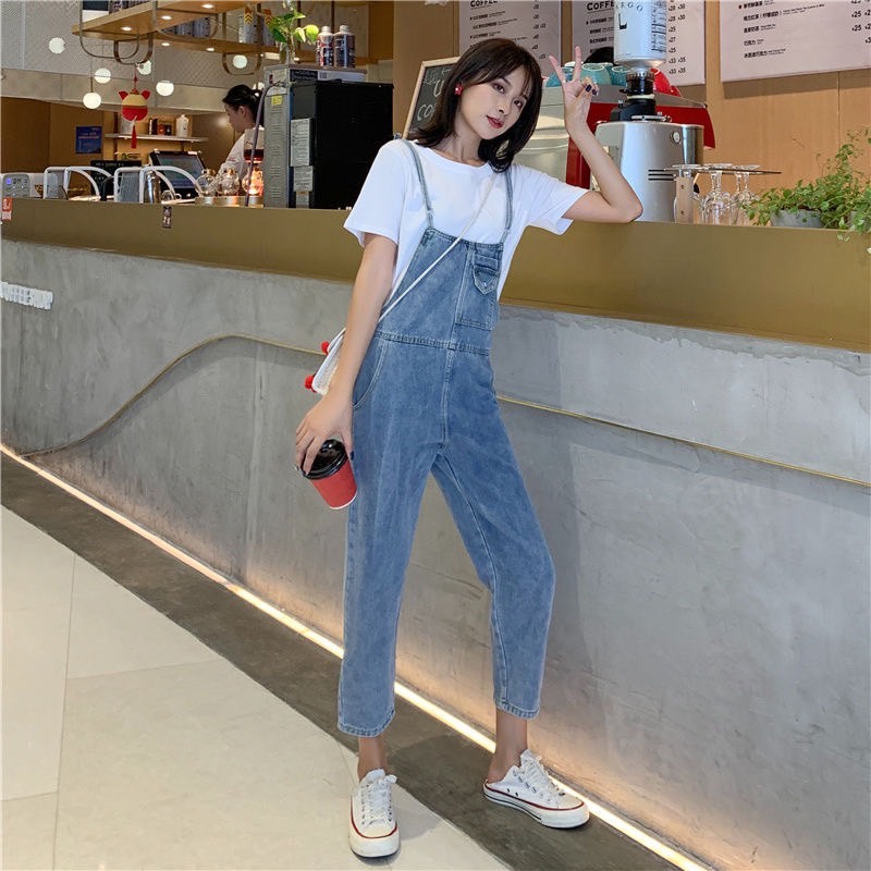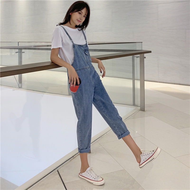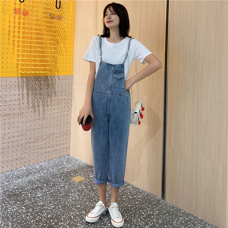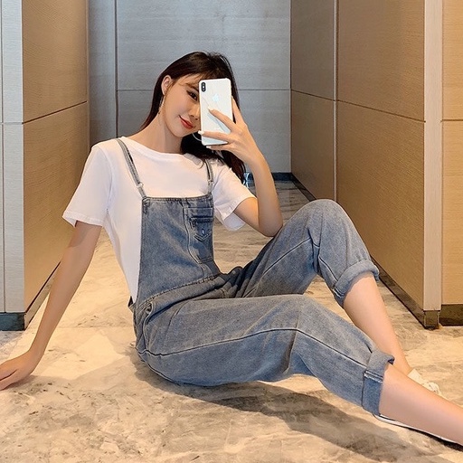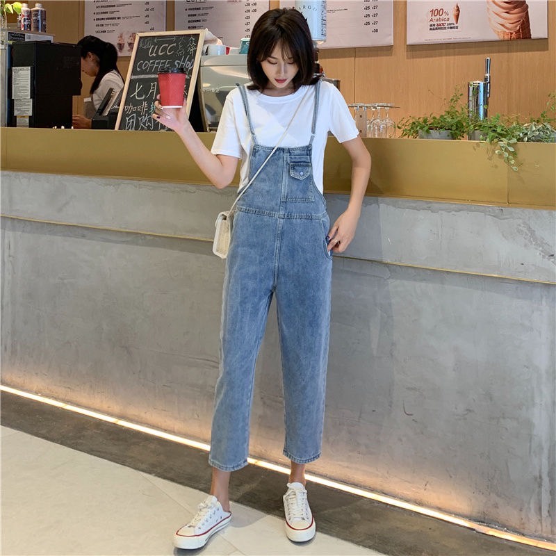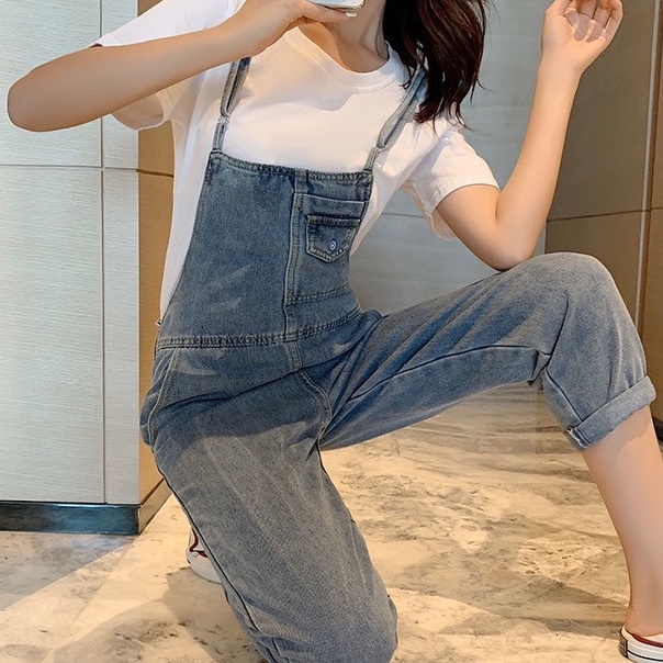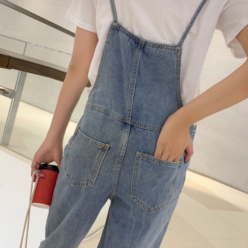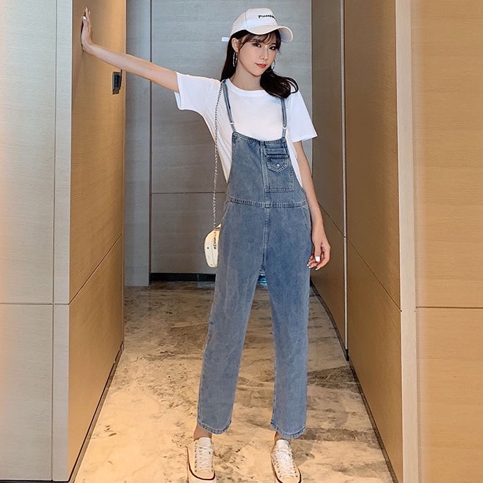 ZUCA”S - (現貨)排扣名媛高腰牛仔吊帶褲 。藍 S/M/L【A-2810】