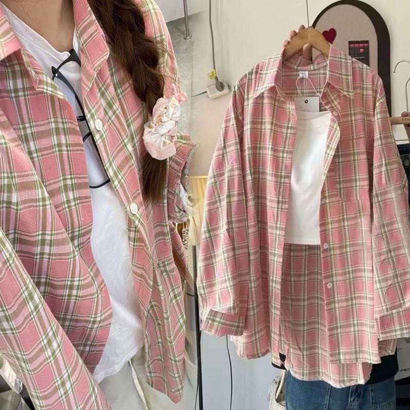 ZUCA”S - 寬鬆格子襯衫 春季新款 慵懶休閒 顯瘦上衣 女上衣 外套 襯衫 女裝 - T-0785