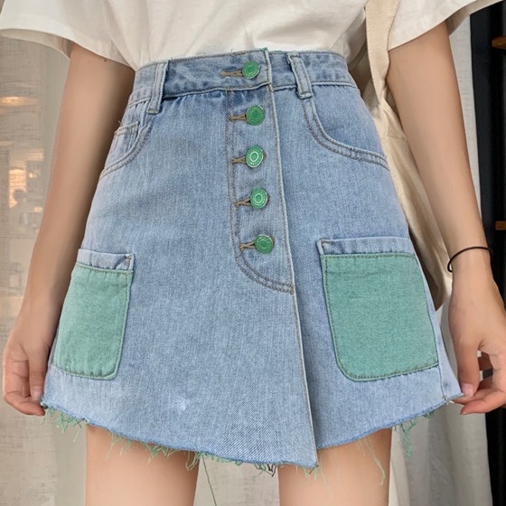ZUCA”S - (現貨)韓國排扣高腰顯瘦A字牛仔裙短裙。【A-179】