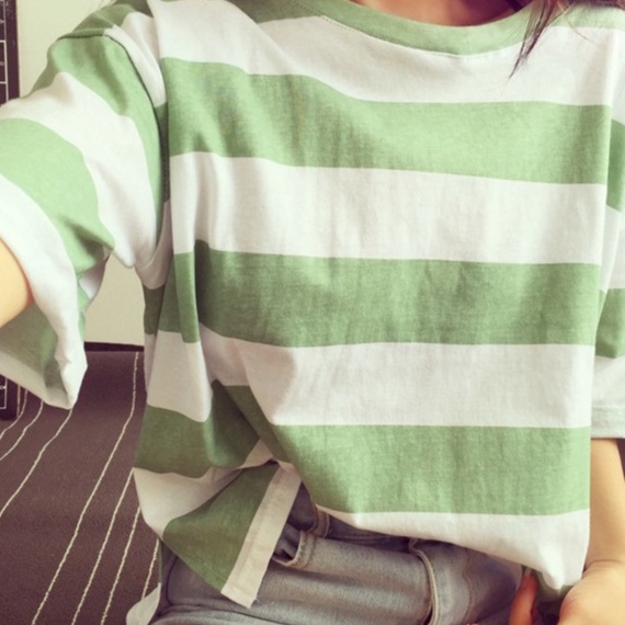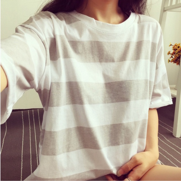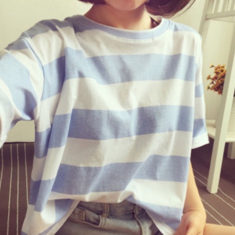 ZUCA”S - 學院風 寬鬆上衣 圓領條紋配色短袖上衣【NN-6819】