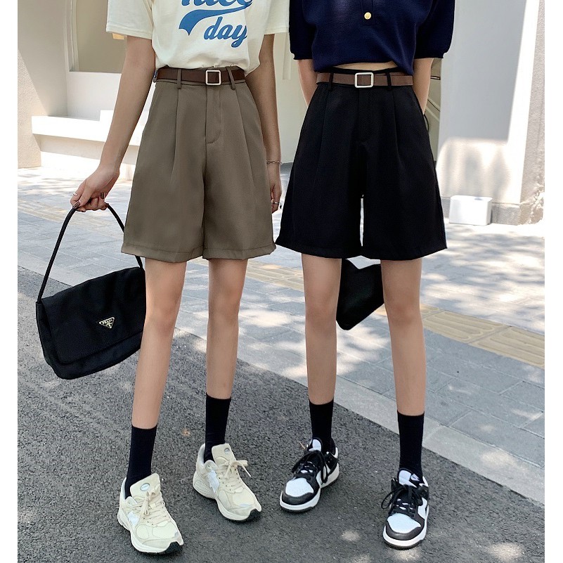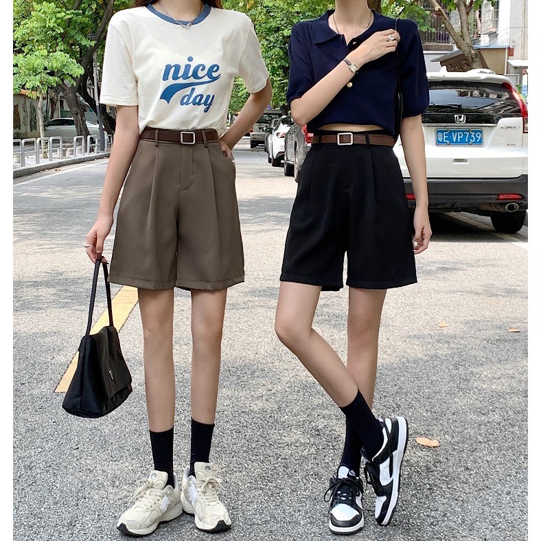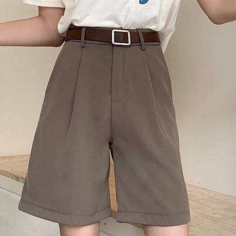 ZUCA”S - 高腰半鬆緊腰西裝褲直筒A字短褲 - A-7139