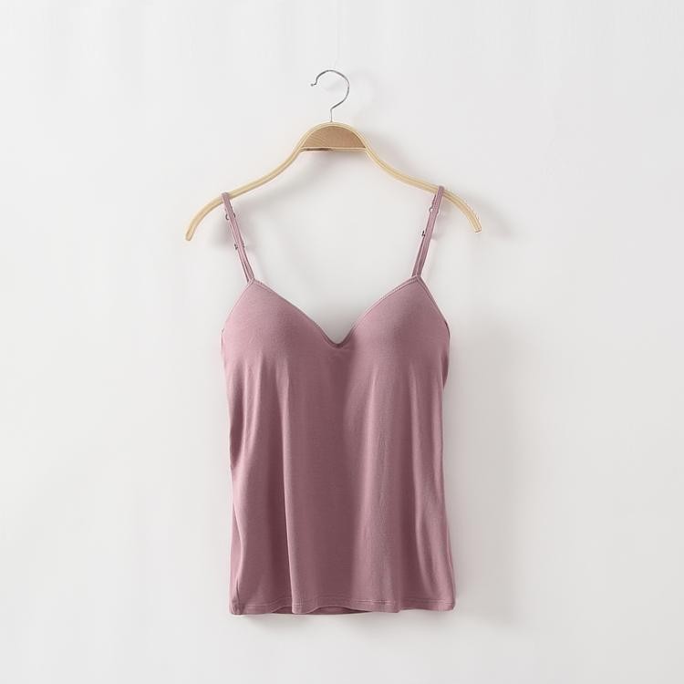 ZUCA”S - 莫代爾BRA背心莫代爾 bra 背心無鋼圈 一體式深V無袖背心細肩帶罩杯一體式 - HL-976