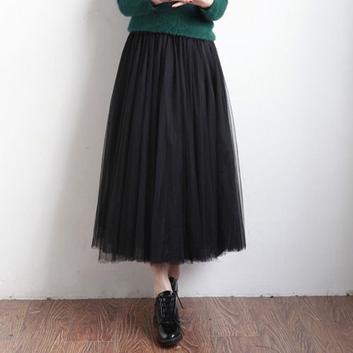 ZUCA”S - 韓版修身三層紗裙A字裙 長裙 大裙襬紗裙 半身裙 百褶裙 長紗裙 及膝裙 網紗裙 - W-815