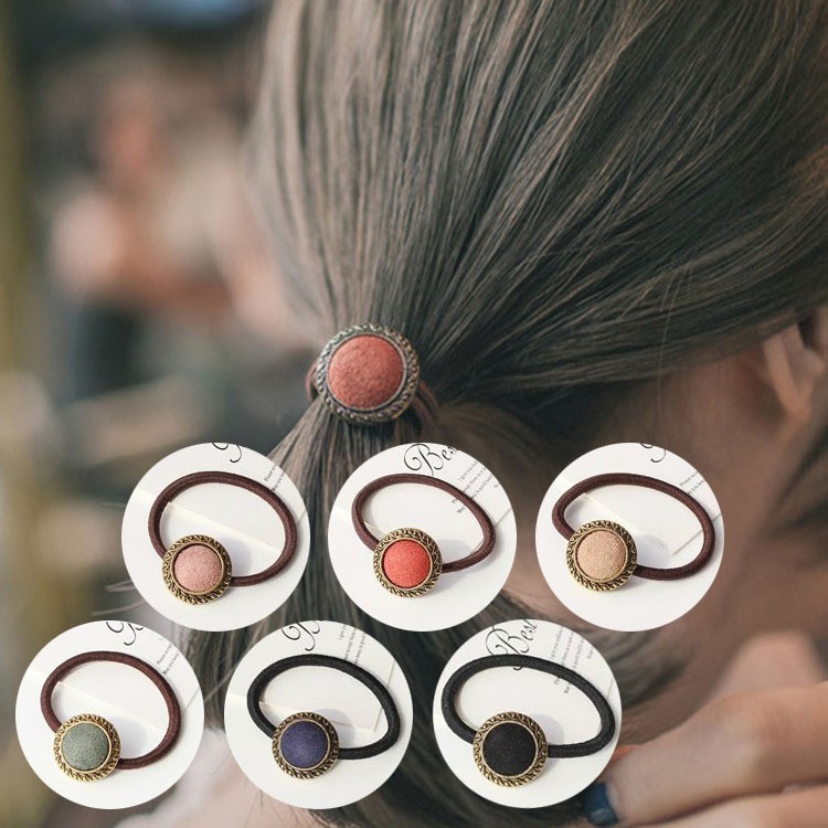 ZUCA”S - 韓國髮飾小清新復古布藝紐扣式發繩 -T-2066