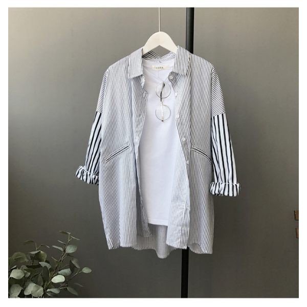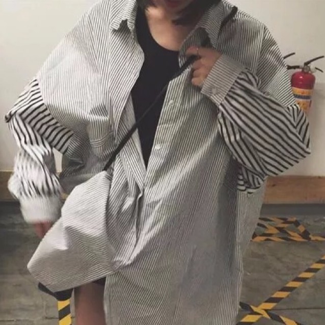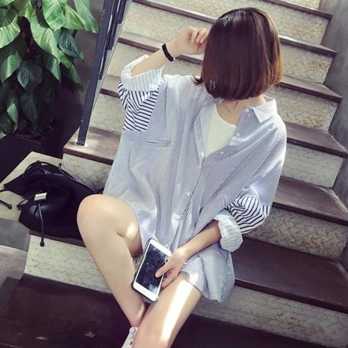ZUCA”S - 條紋襯衫 藍色條紋 長袖大碼 寬鬆韓範襯衣 男友風外套襯衫 長袖外套 - RT-1276