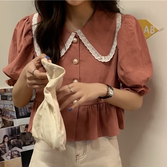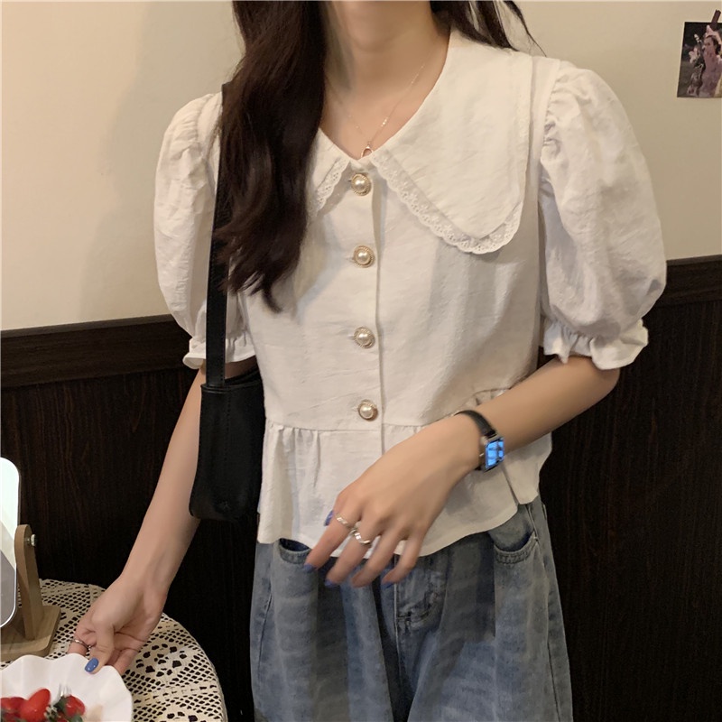 ZUCA”S~(現貨)荷葉領蝴蝶結短袖襯衫 - CHI-480