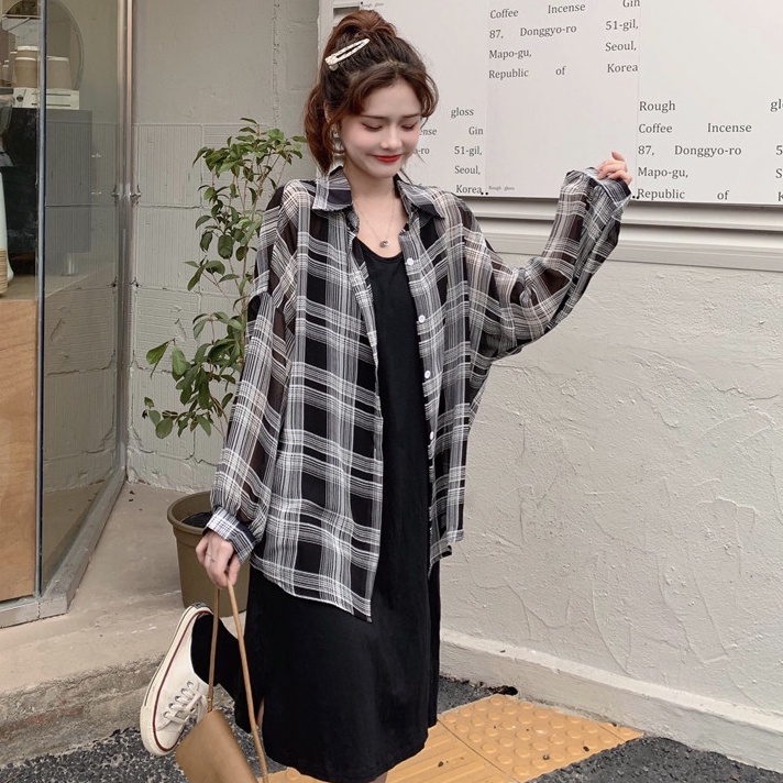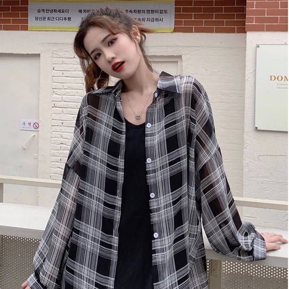 ZUCA”S - 韓版慵懶風寬鬆格子外套 襯衫 百搭 外套 上衣 女裝 衣服 薄外套襯衫長版外套 - Y-327
