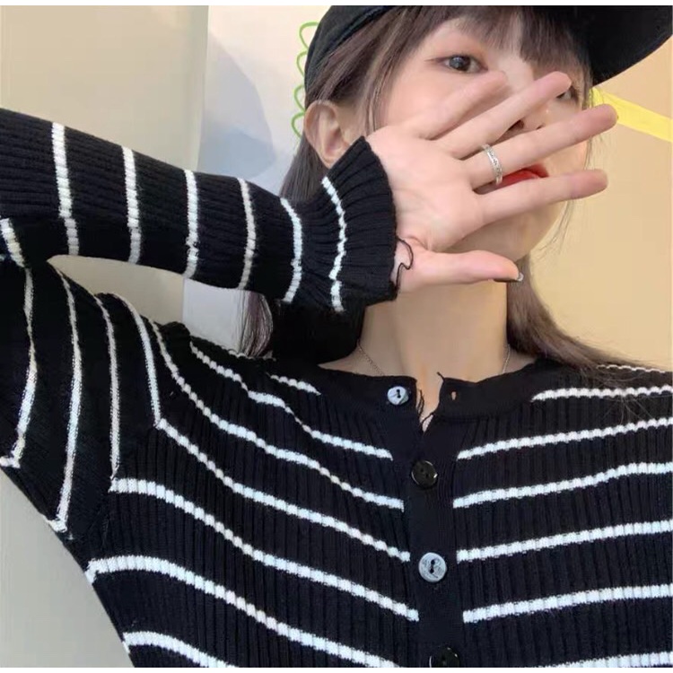 ZUCA”S - 長袖條紋針織衫 - T-8598