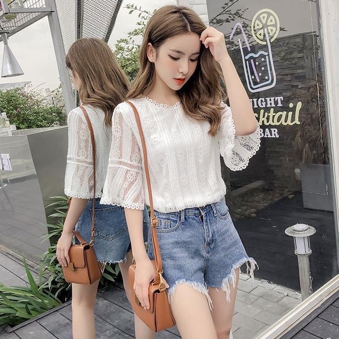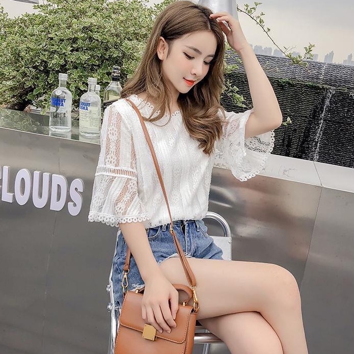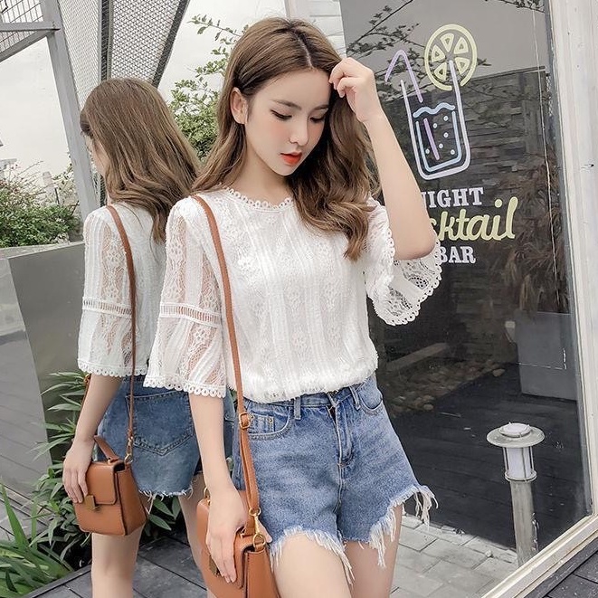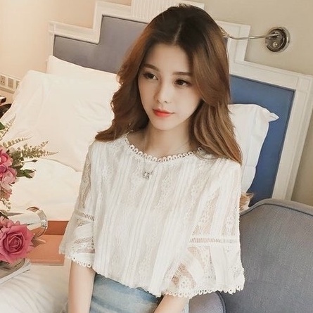 ZUCAS - 蕾絲鏤空喇叭袖襯衫 - ZG-1754
