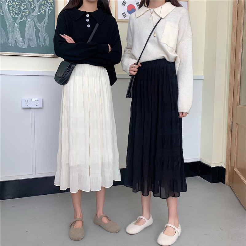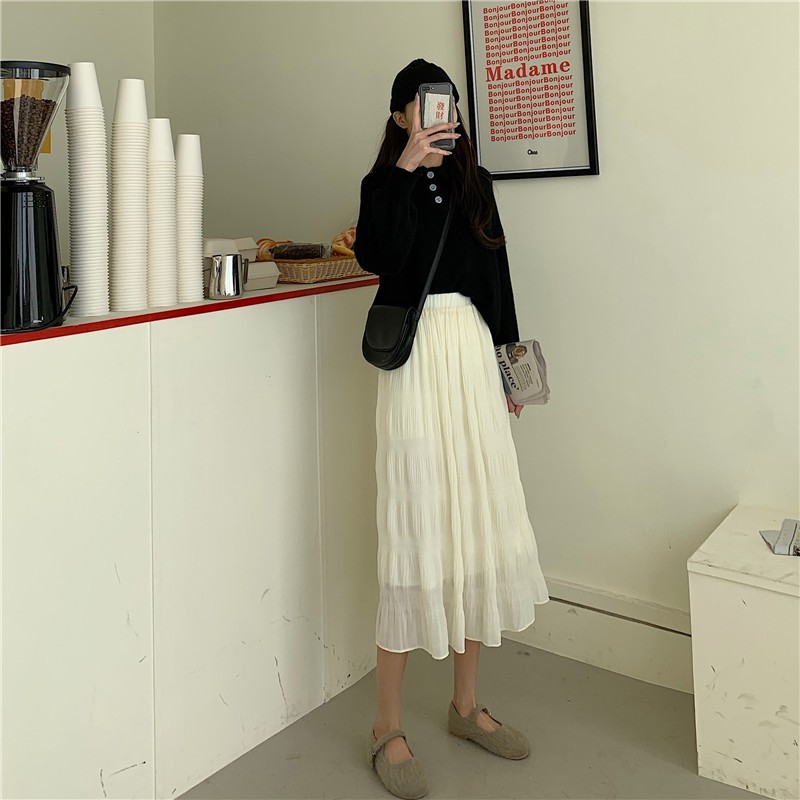 ZUCA”S - (現貨出清)超仙的網紗高腰半身裙中長款褶皺A字裙 - A-215