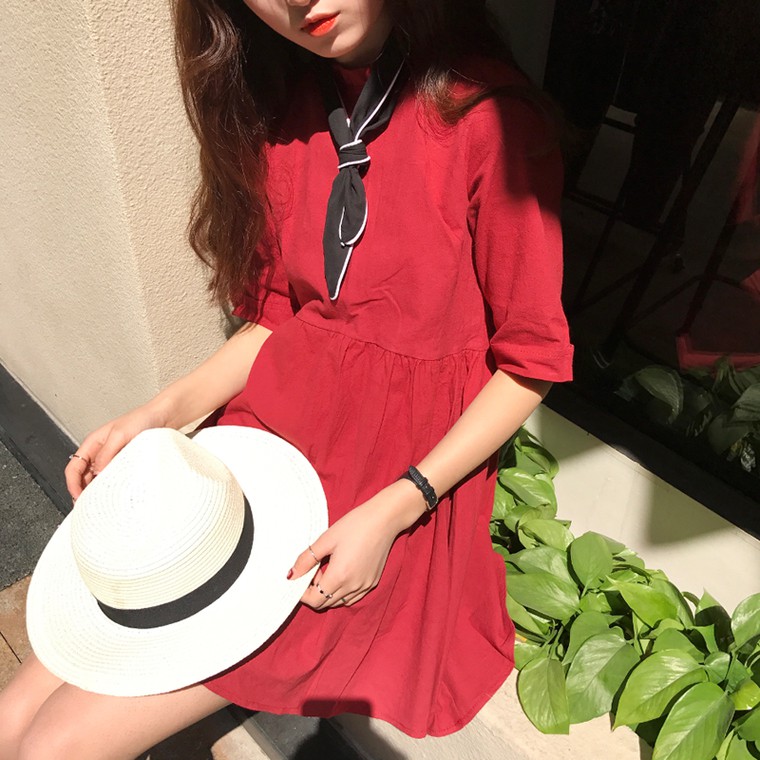 ZUCA”S - 學院風長版連衣裙簡約百搭A字裙 - HL-6952