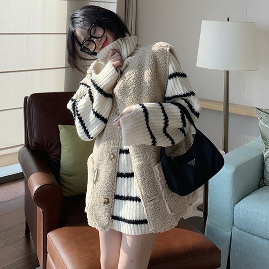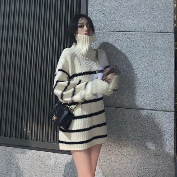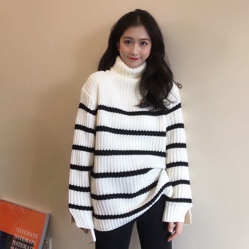 ZUCA”S - 慵懶風條紋中長款針織衫 - RE-6322現貨