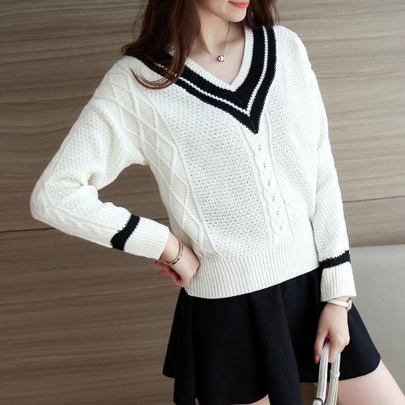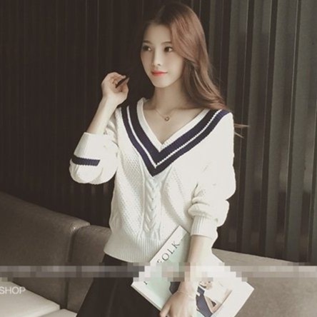 ZUCA”S - 海軍風短款V領毛衣針織衫 - TD-9750