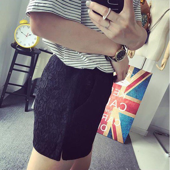 ZUCA”S - 雙層鬆緊中高腰百搭蕾絲短褲 - ER-852