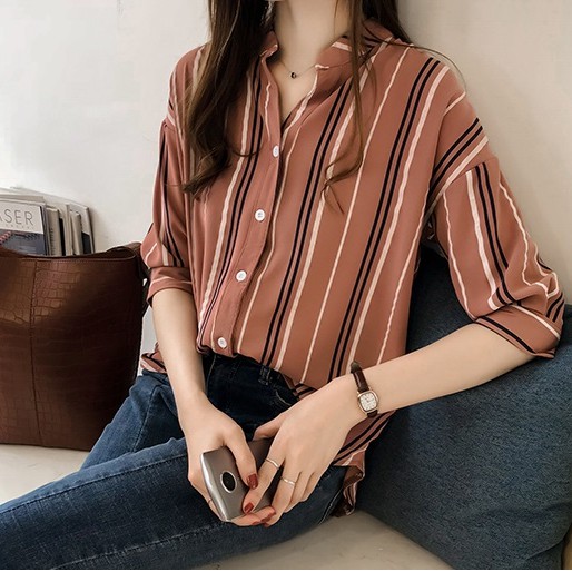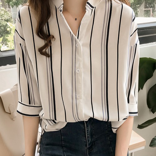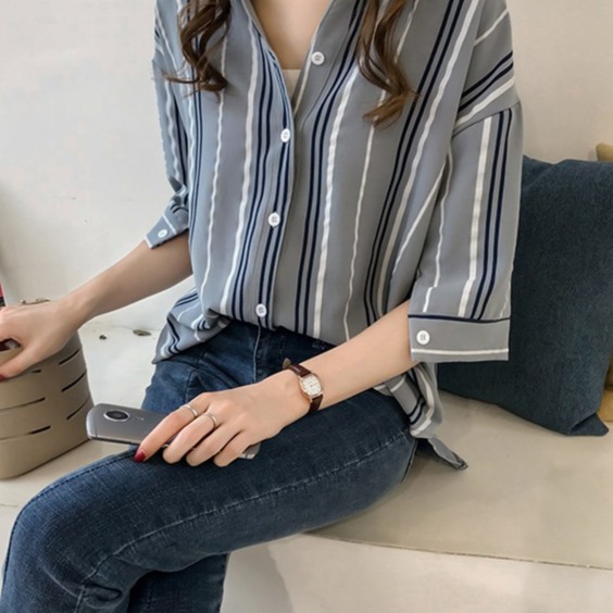 ZUCA”S - 條紋設計感短袖襯衫 - HL-2073