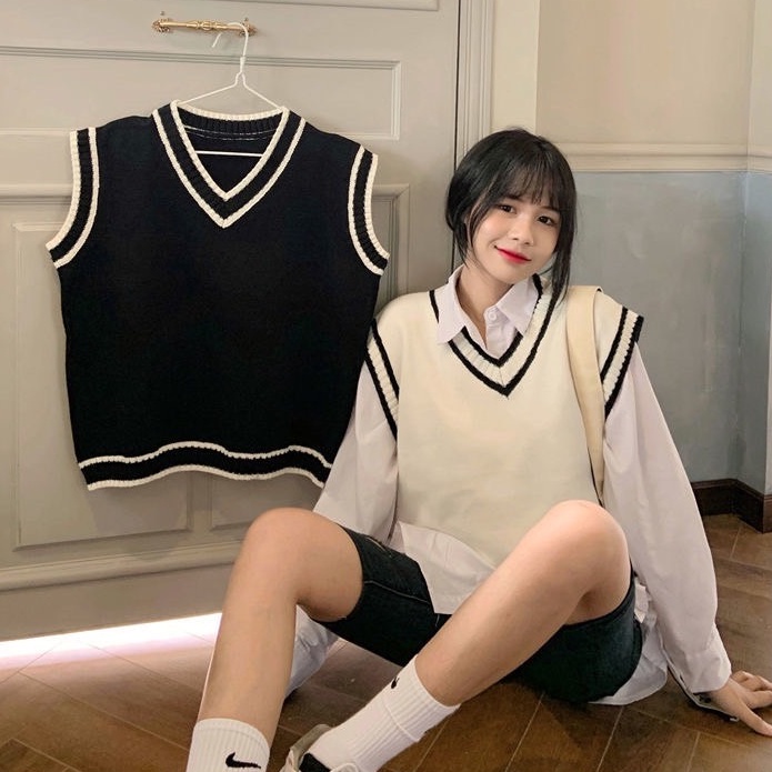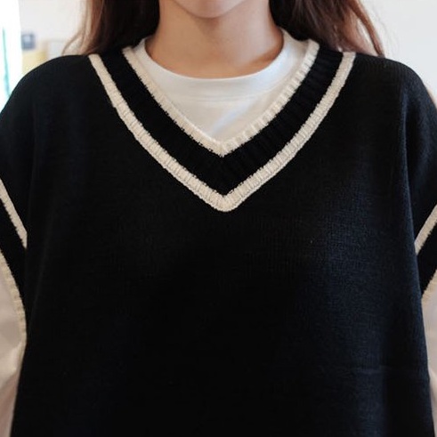 ZUCA”S -海軍風V領毛衣寬鬆針織衫背心 -TD-8850