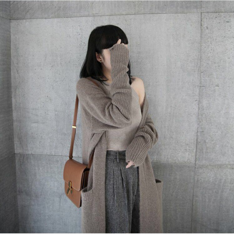 ZUCA”S - 雙口袋粗毛線長版OVERSIZE長袖針織外套 - GU-9925