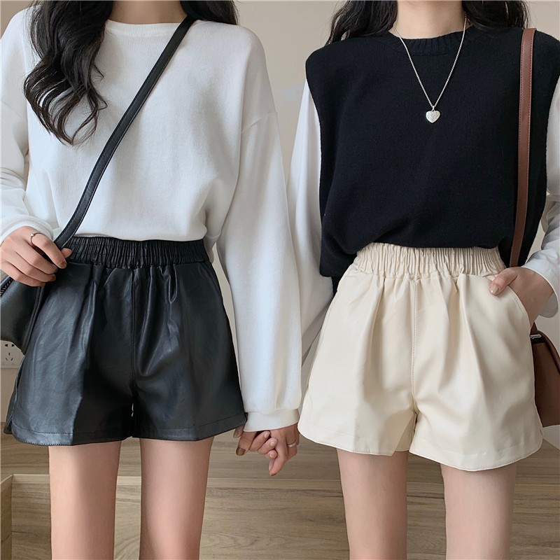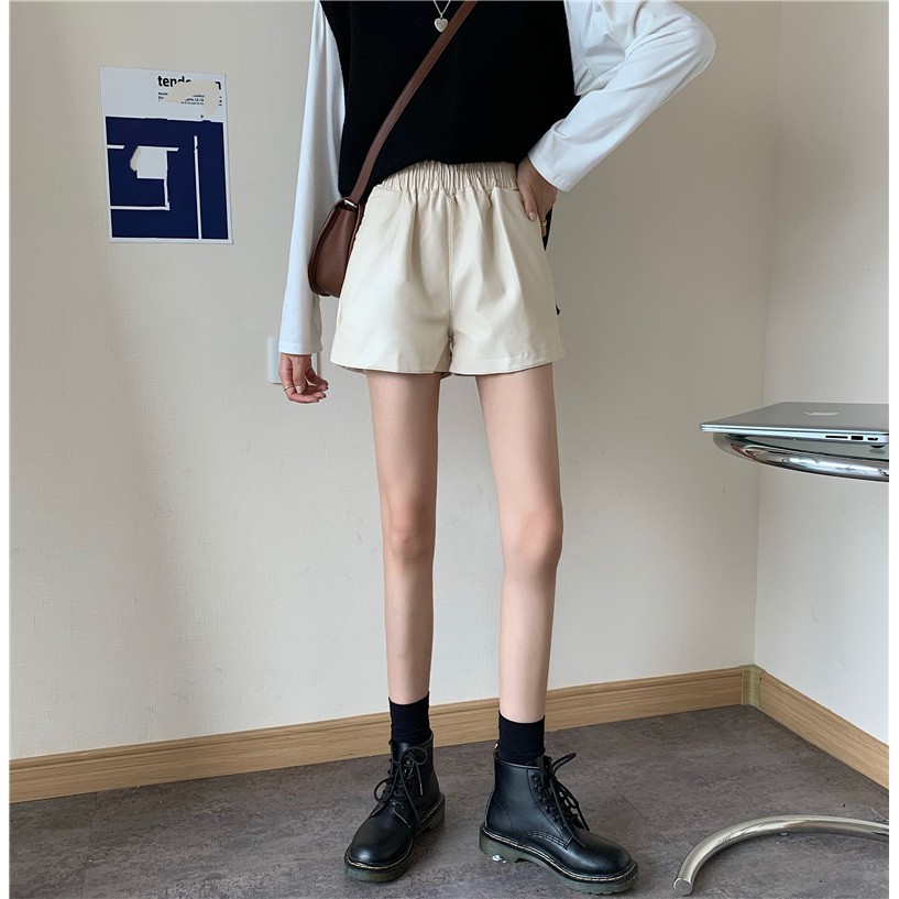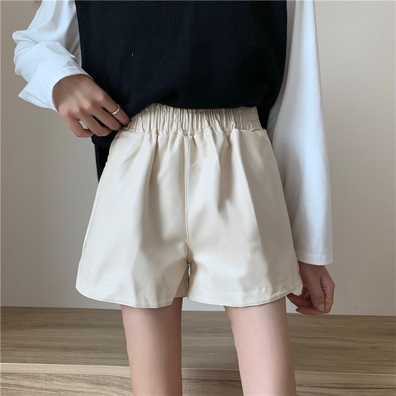 ZUCA”S - 韓版高腰顯瘦休閒皮短褲 休閒褲 短褲 褲子 皮褲 女裝A字PU皮短褲 - HL-2559