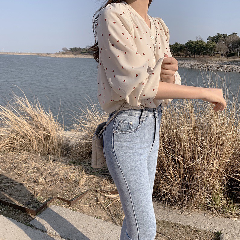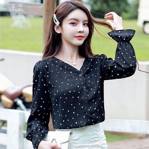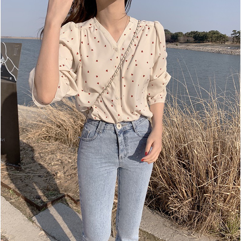 ZUCA”S - 氣質愛心雪紡短袖襯衫 - XA-1711
