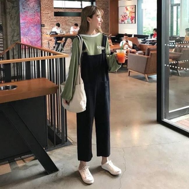 ZUCA”S - 背帶褲闊腿褲學生毛呢吊帶褲 - A-4551