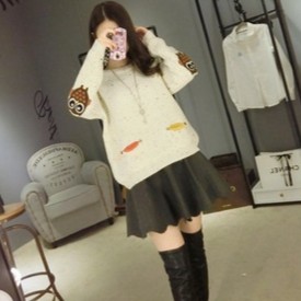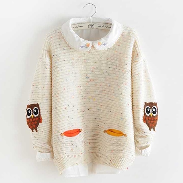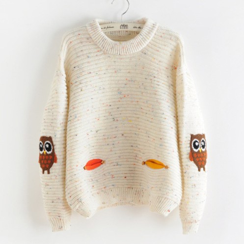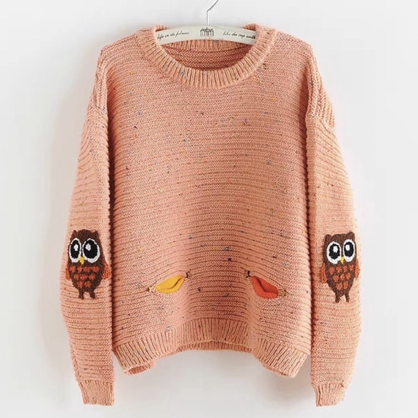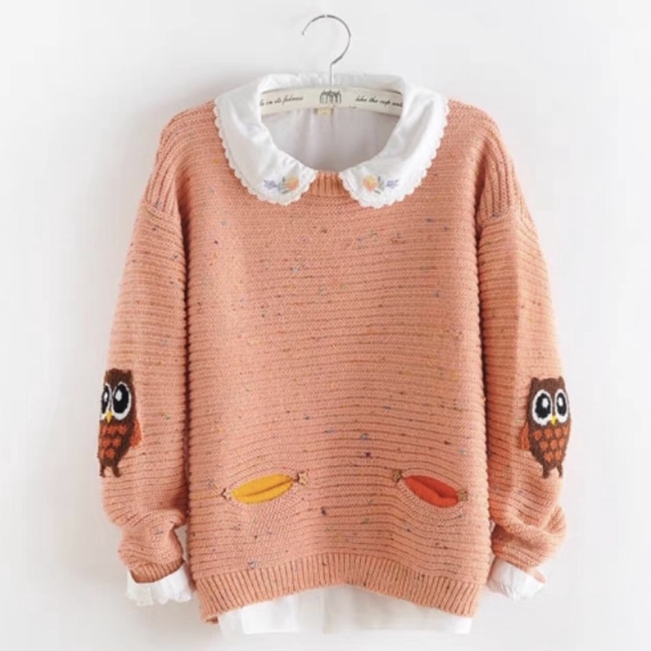 ZUCA”S - 可愛貓頭鷹學院風針織毛衣 - N-1568