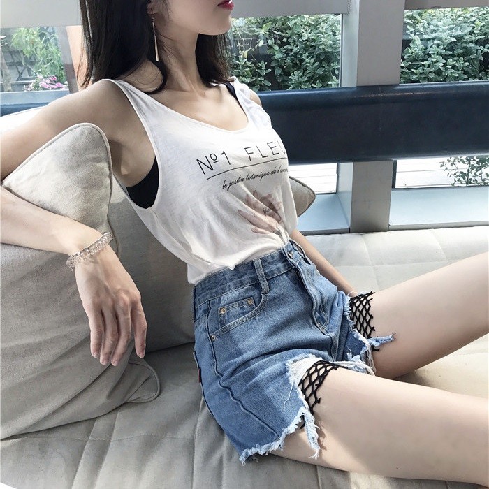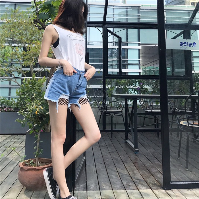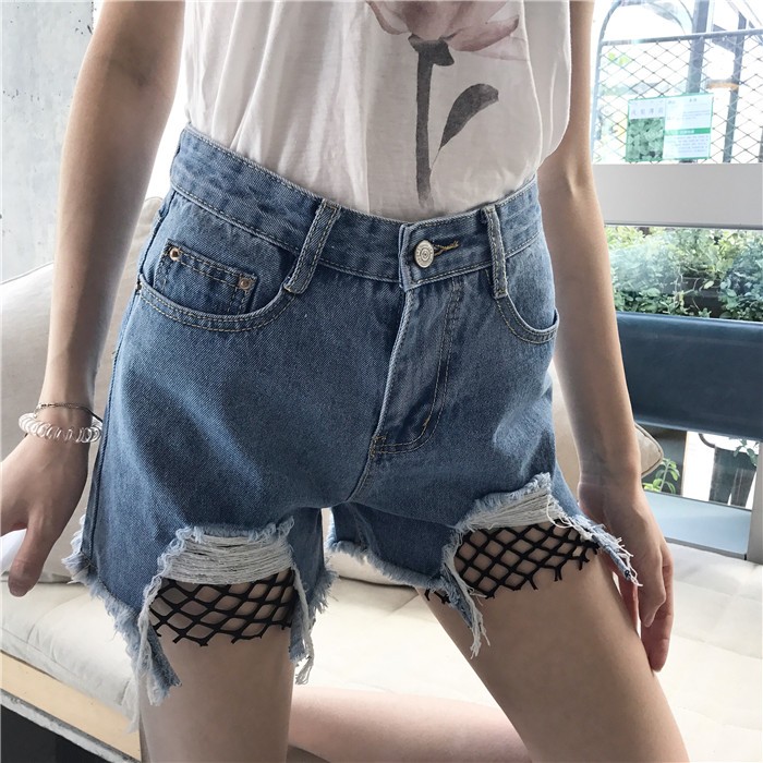 ZUCA”S - 韓版磨破洞毛邊高腰牛仔短褲 -NN-2066現貨