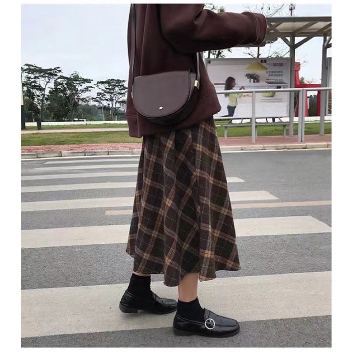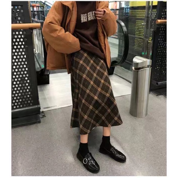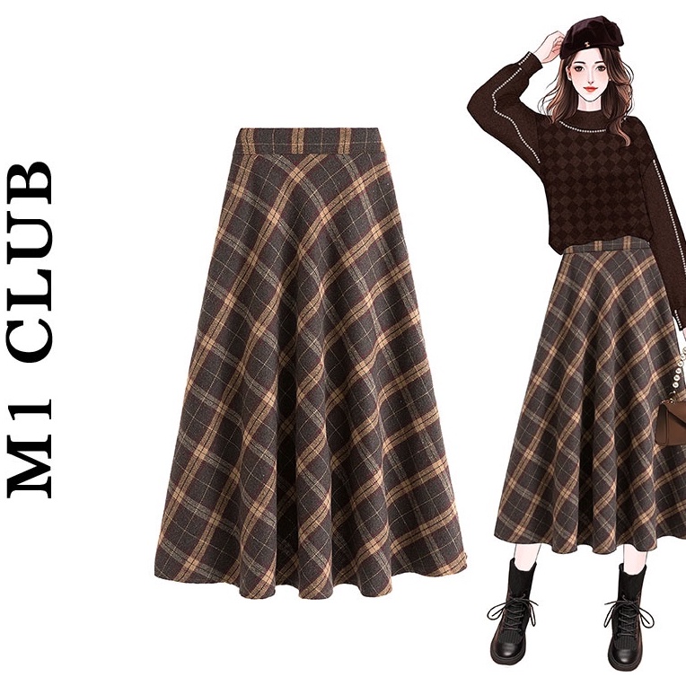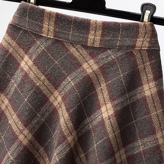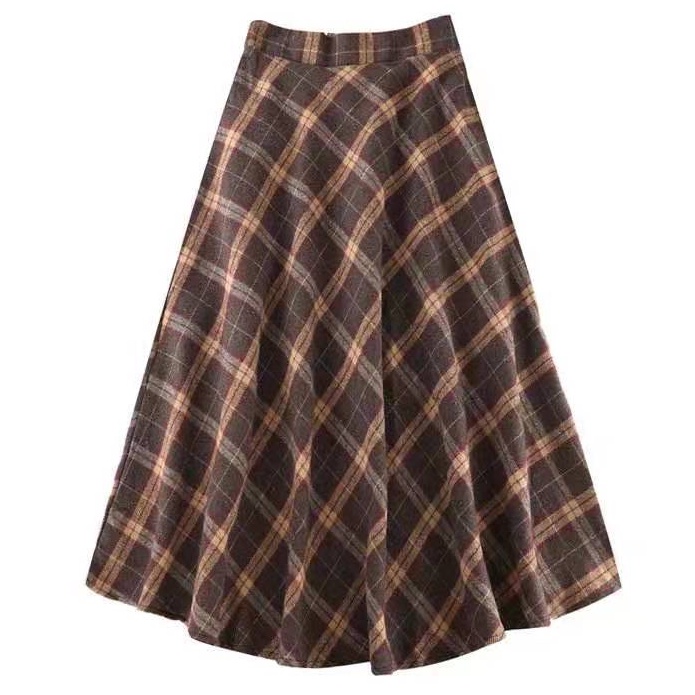 ZUCA”S - 復古毛呢格子高腰A字裙 - DF-709