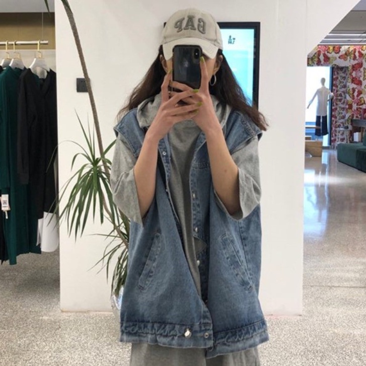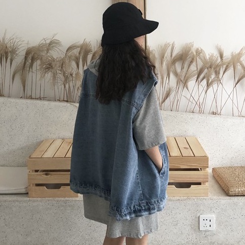 ZUCA”S -(現貨出清)原宿風寬鬆牛仔馬甲背心外套 - DW-9122