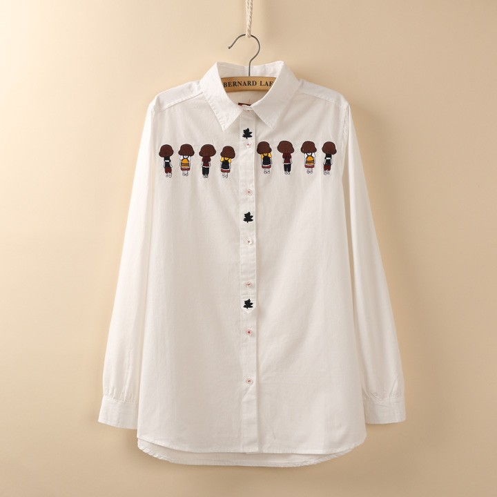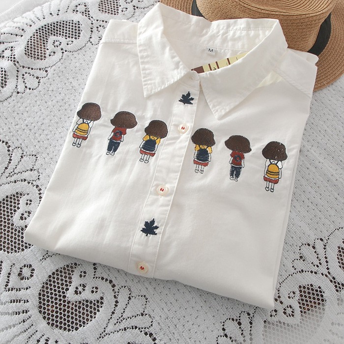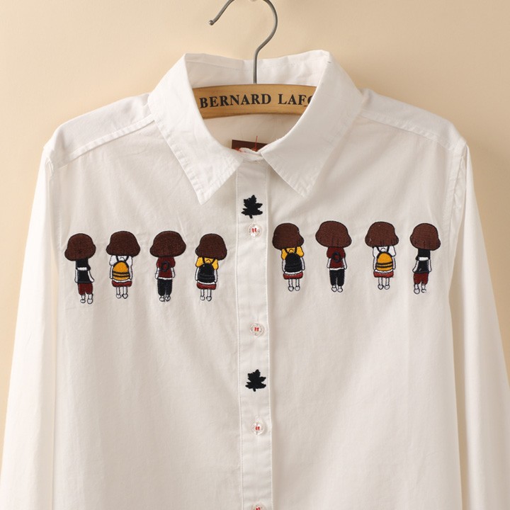 ZUCA”S -背影女孩刺繡長袖襯衫 - XA-7277