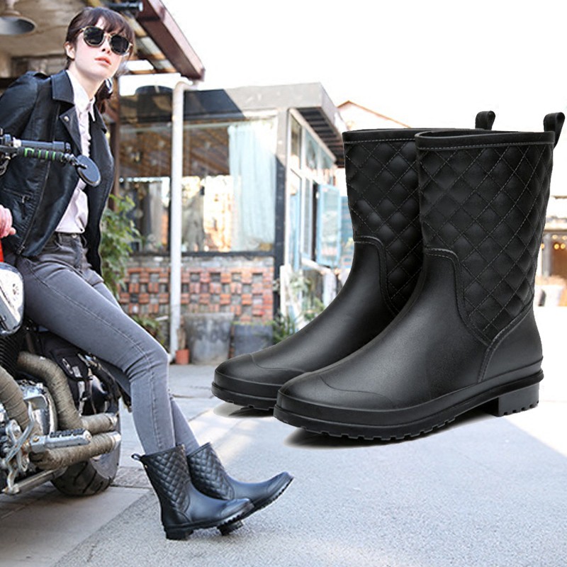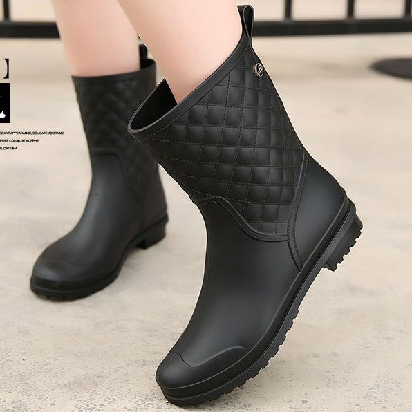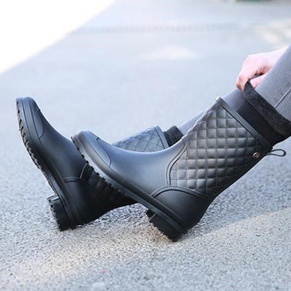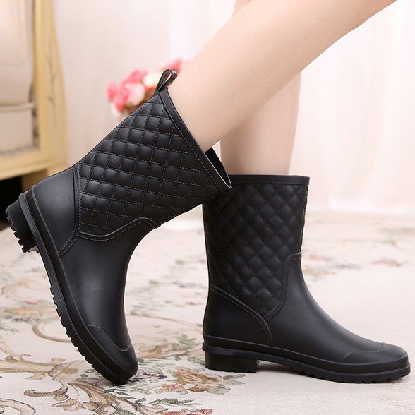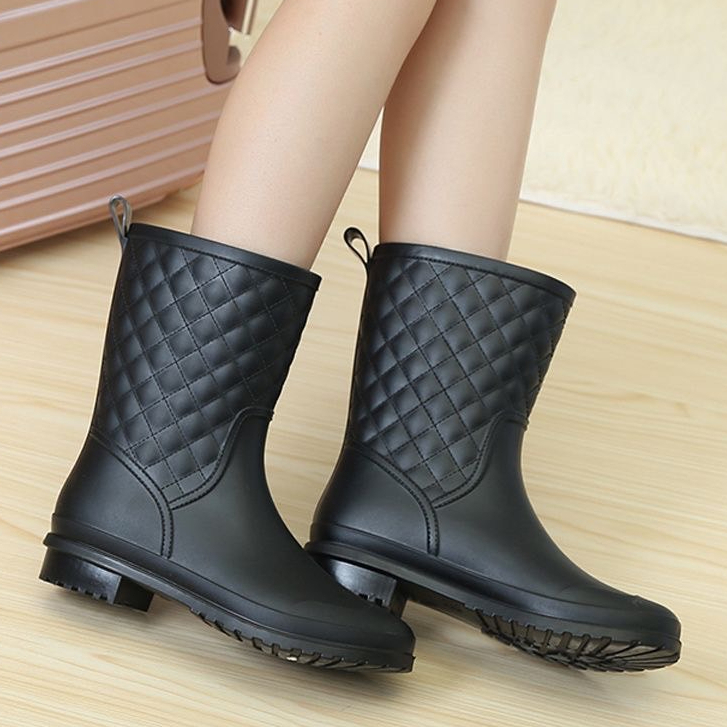 ZUCAS - 簡約菱格造型防水半筒雨靴雨鞋 -WE-913