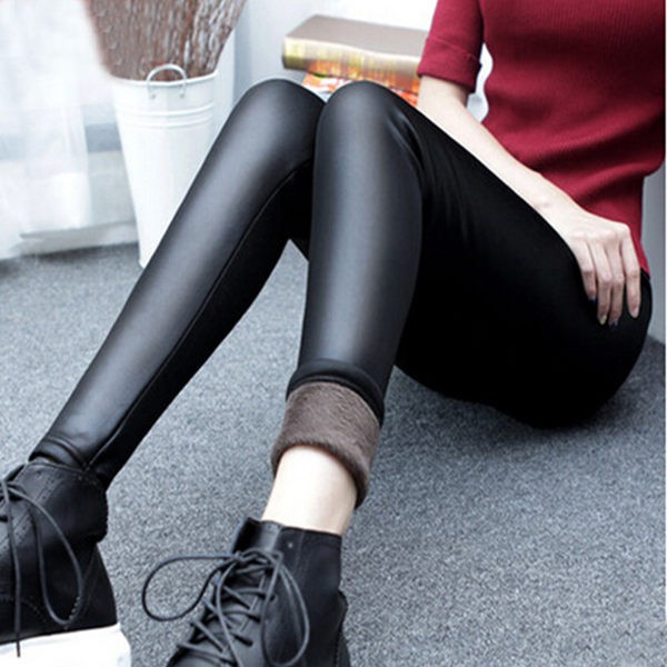 ZUCA”S - 仿皮褲加絨打底褲 外穿顯瘦彈力褲 緊身皮褲微刷毛內搭褲 -【A-810】