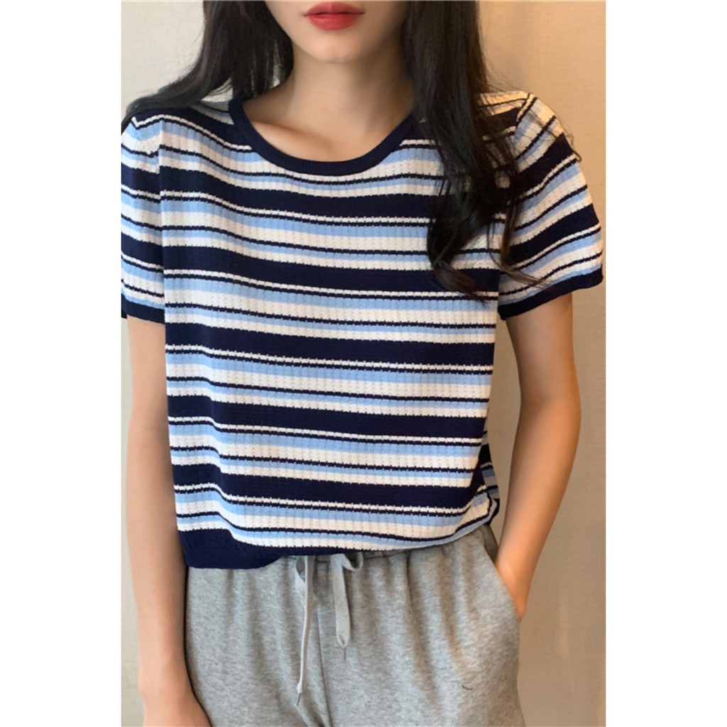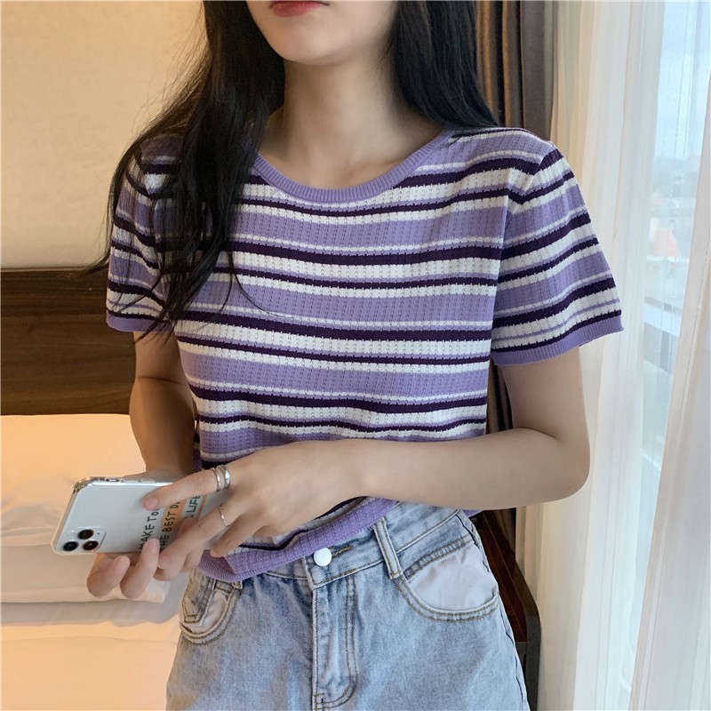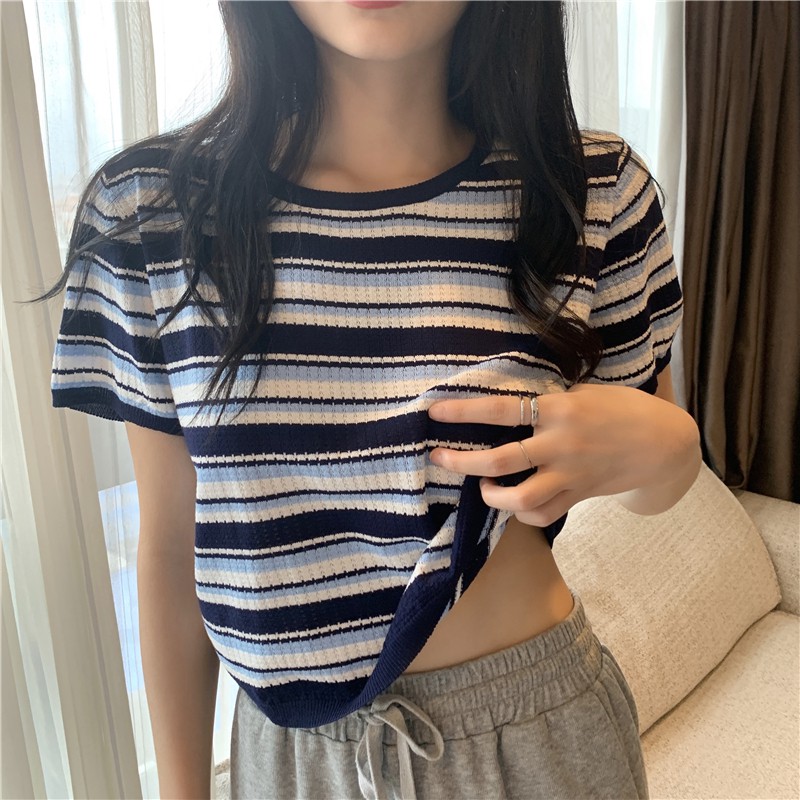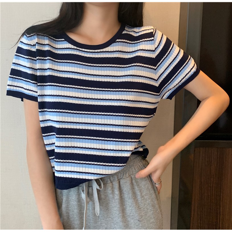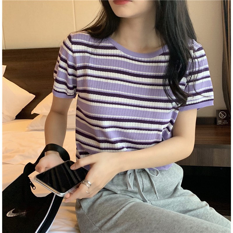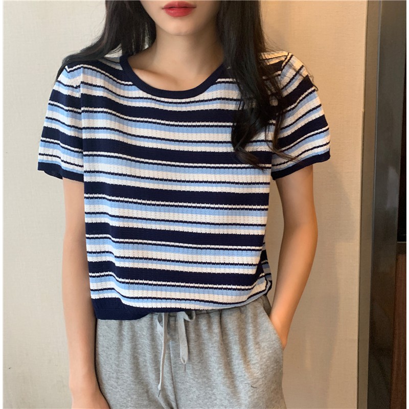ZUCA”S - 復古條紋針織短袖T恤 - T-2708