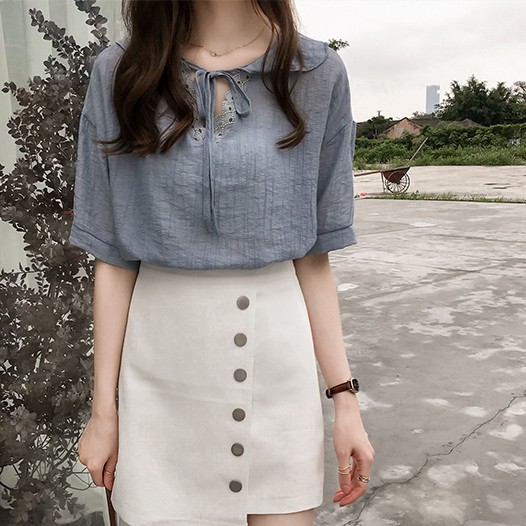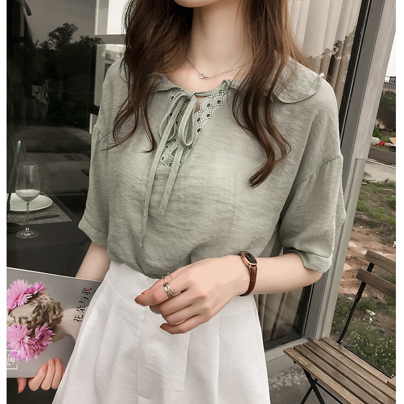 ZUCA”S - 白色短袖雪紡衫 - T-794