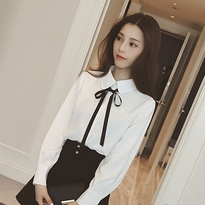 ZUCAS~(現貨)韓百搭日系綁帶蝴蝶结長袖襯衫 - CHI-180