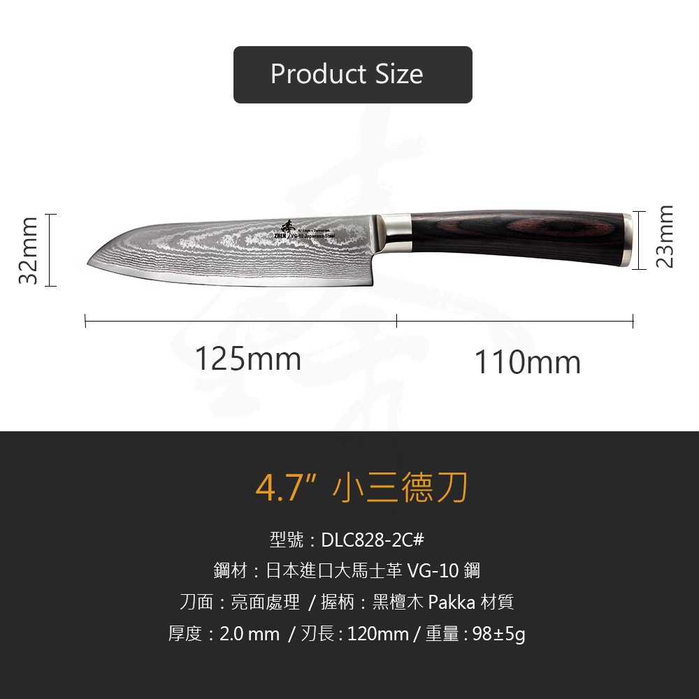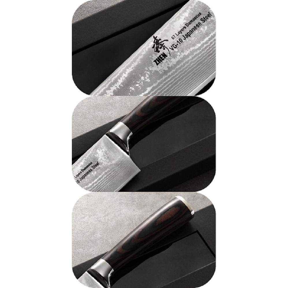 《Zhen 臻》120mm (VG10)鋼 小三德刀 (小萬用料理刀) - 黑檀木柄 ~ 日本進口67層大馬士革鋼