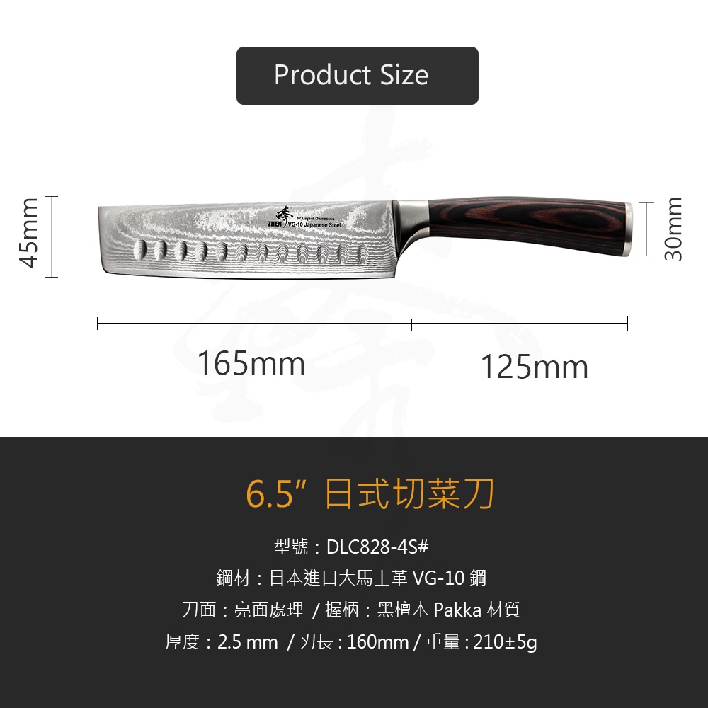 《Zhen 臻》170mm (VG10)鋼 日式切菜刀 - 黑檀木柄 ~ 日本進口67層大馬士革鋼