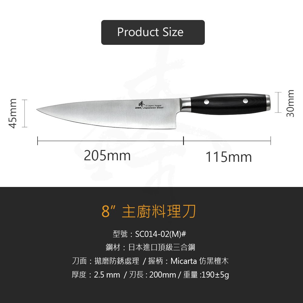 《Zhen 臻》210mm 牛刀 (主廚料理刀 廚師刀) - 類黑檀木柄 ~ 日本進口三合鋼