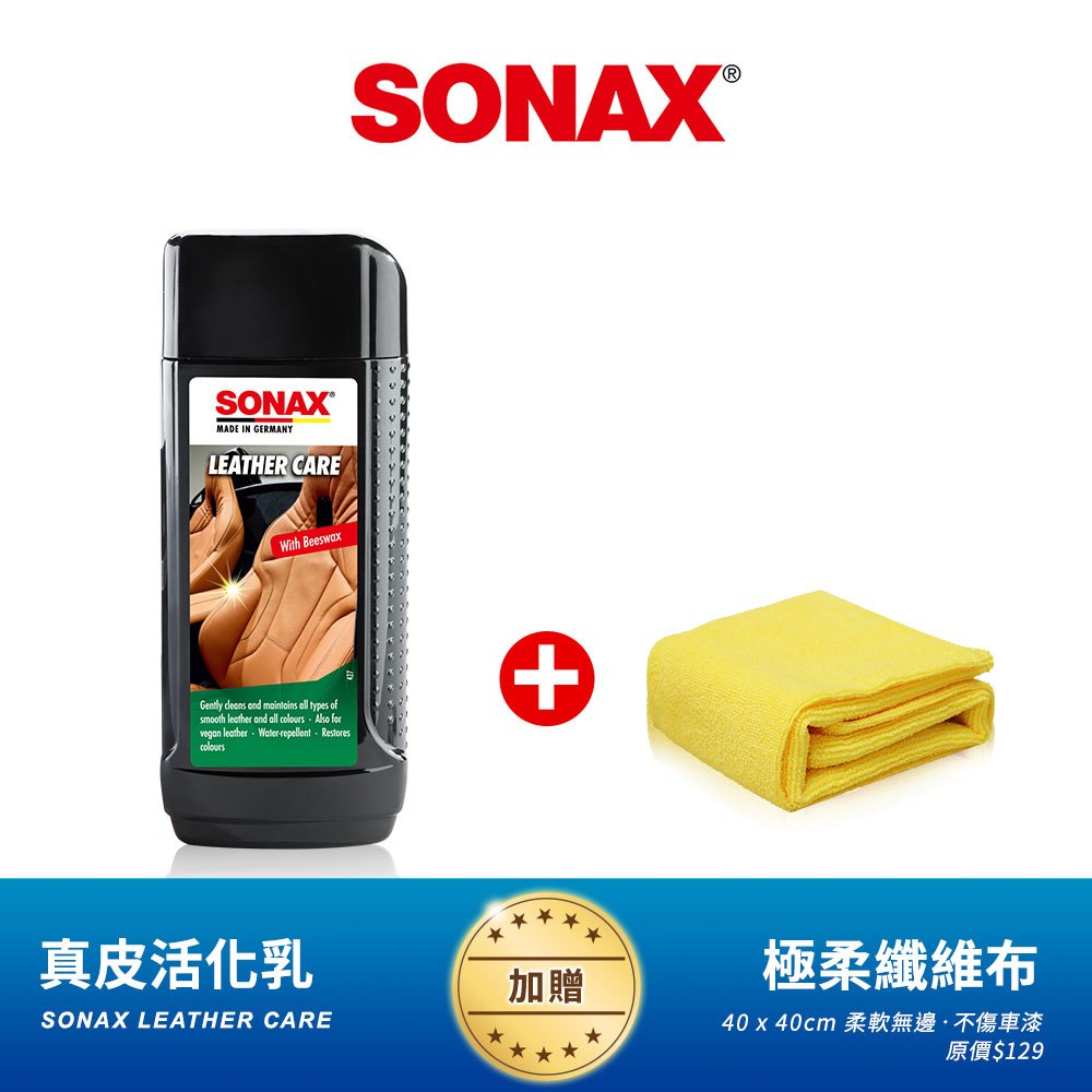 SONAX 頂級滋潤皮革乳 內裝皮椅 皮製品 (真皮 / 合成皮) 頂級蜂蠟 深層滋潤養護 還原色澤 不油膩 真皮活化乳