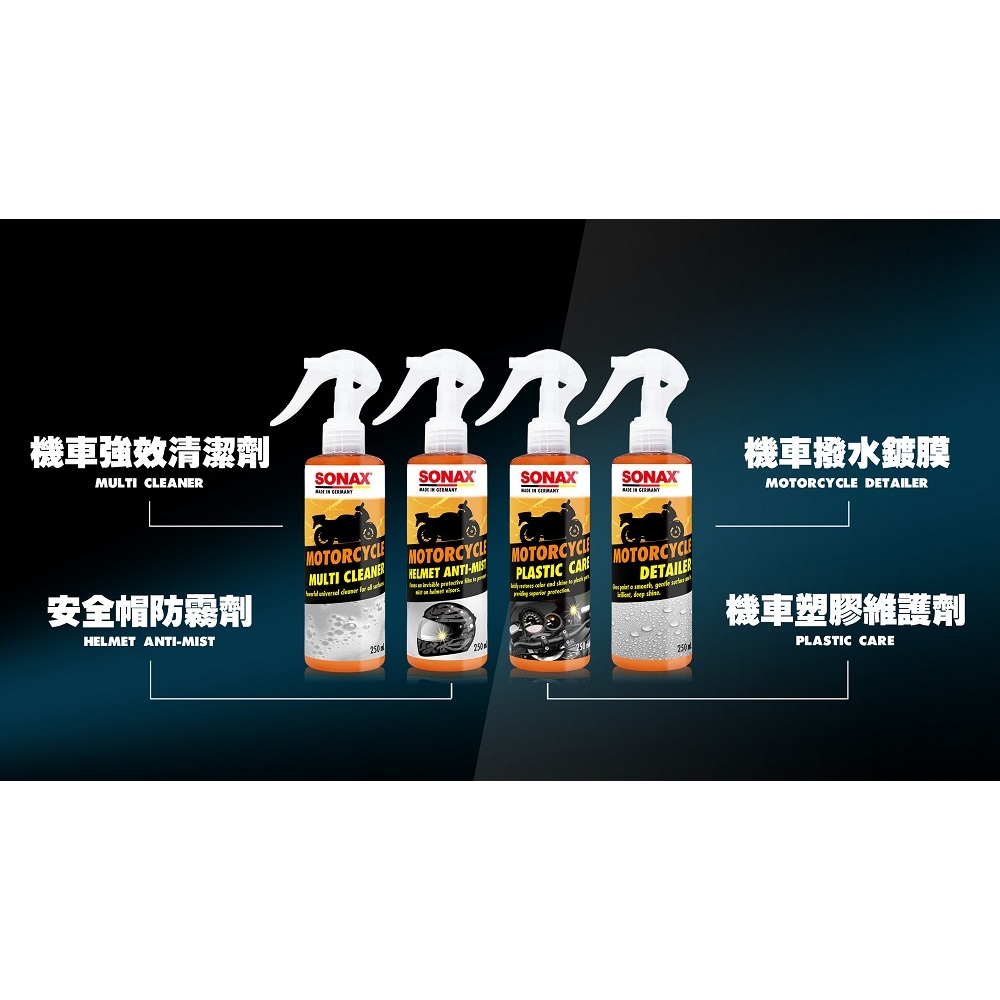 SONAX 機車塑膠保養劑 250ml 機車內裝專用 塑料還原 輪胎保養 防刮塑料 踏板塑膠 德國進口 台灣總代理