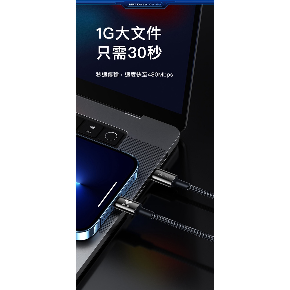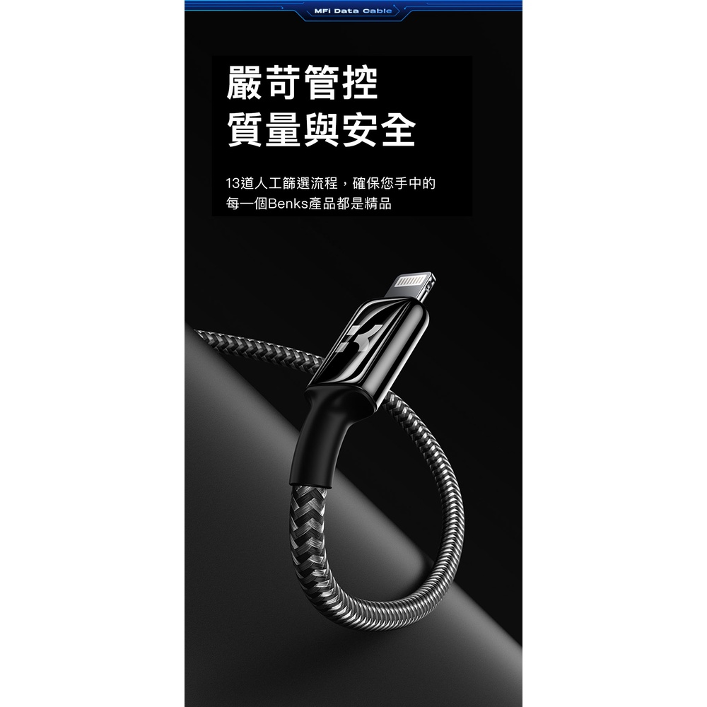 Benks M18 充電編織線 Type-C to Lightning PD快充傳輸線 蘋果MFi認證 iPhone適用