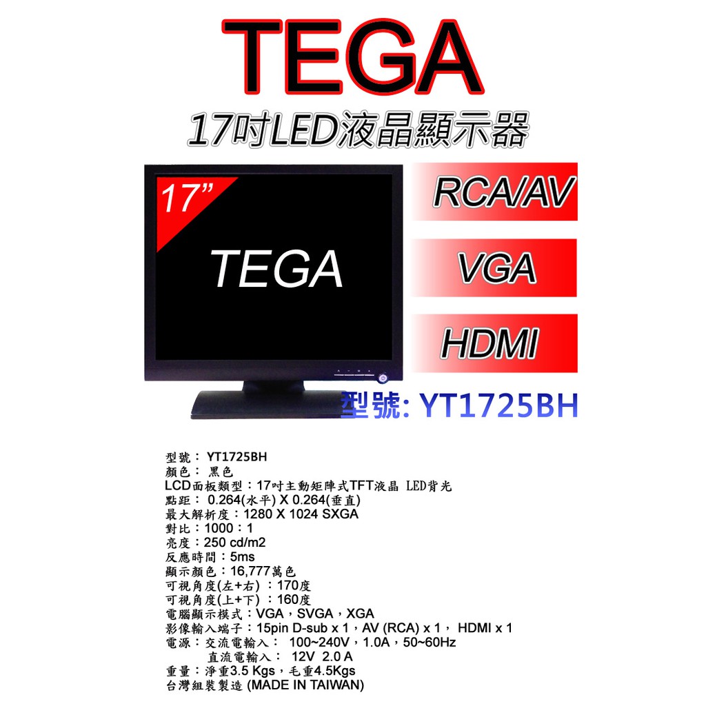 TEGA 17吋 液晶電視/4:3/監控用/多功能(HDMI/VGA/AV/第四台)台灣製造_YT1725BH