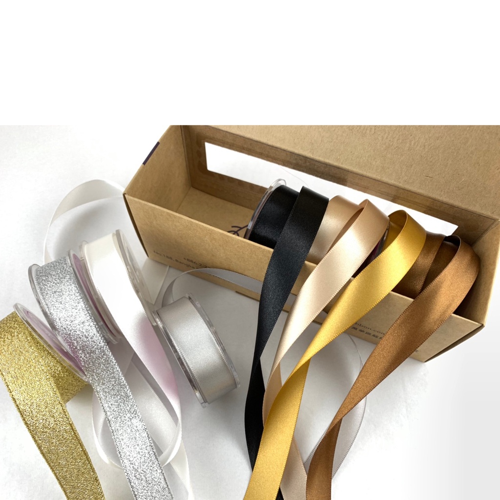 【Crystal Rose緞帶】經典雙緞面黑灰白系/金蔥緞帶組合/8入 >>送燙金收納禮盒