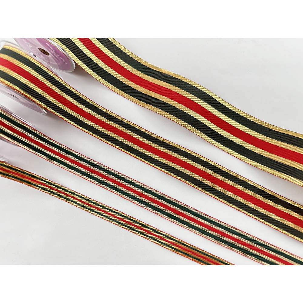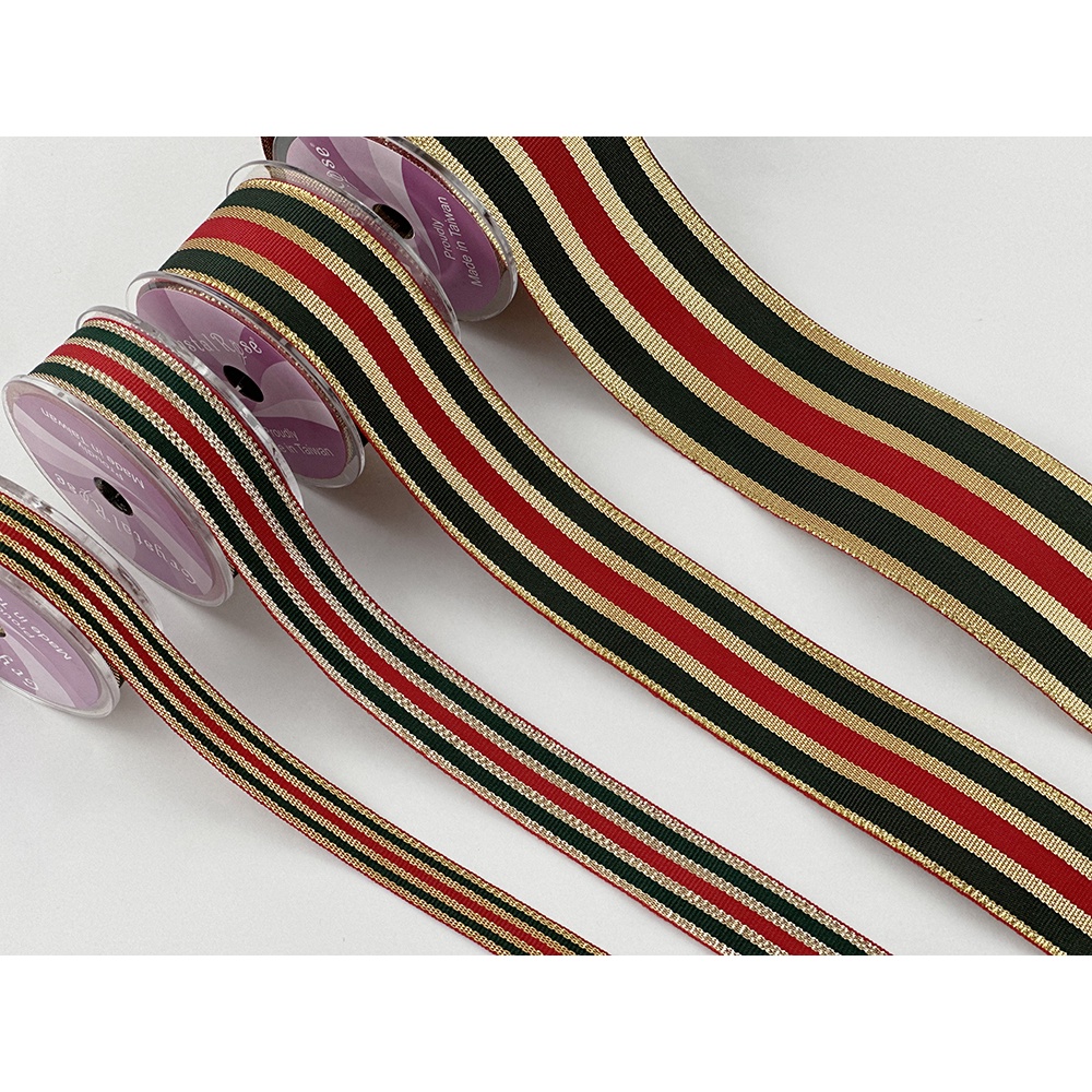 【Crystal Rose緞帶】綴金紅綠緞帶/平織/4款/聖誕緞帶 台灣製造 聖誕禮物包裝