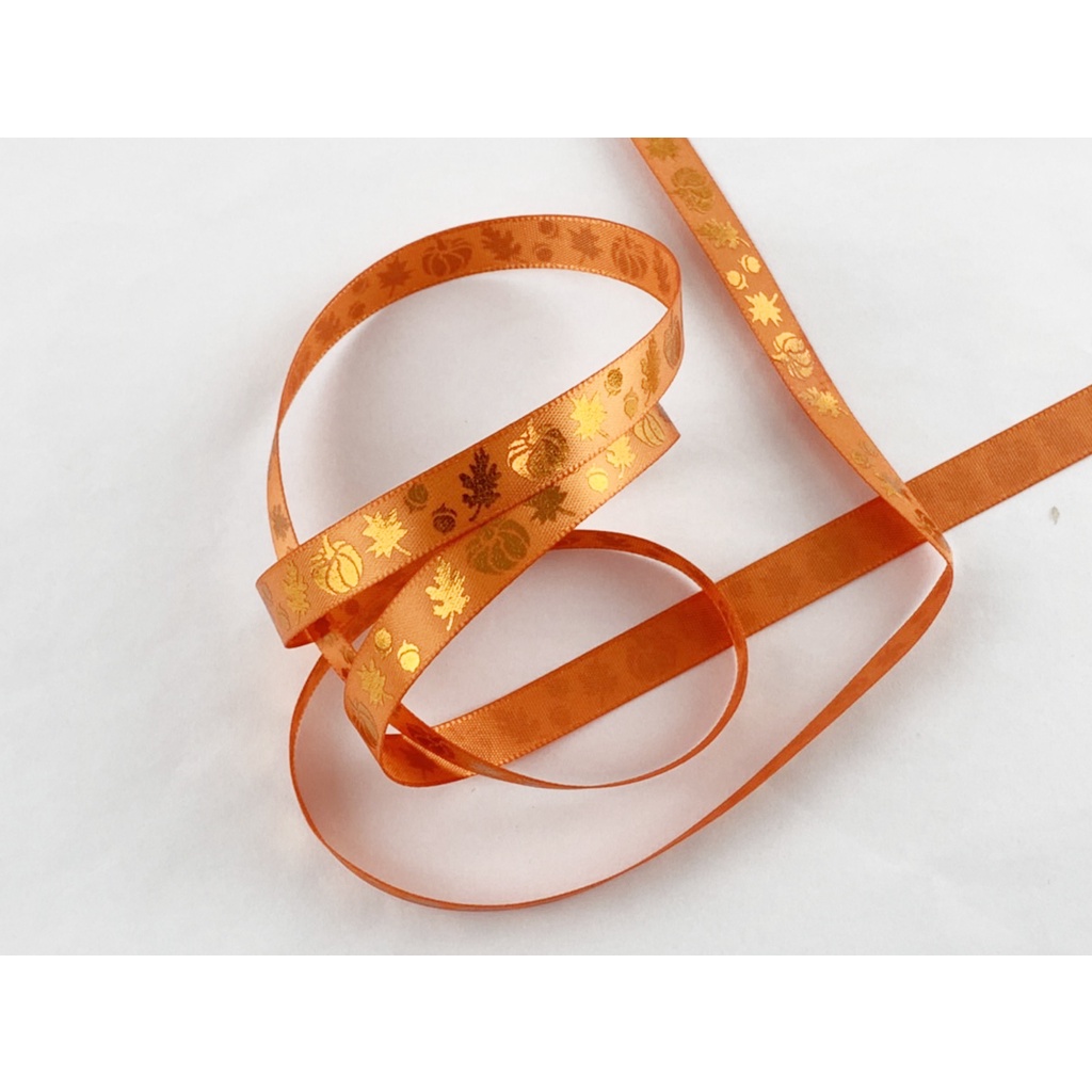 【Crystal Rose緞帶】金鑲南瓜楓葉/10mm/萬聖節緞帶/台灣製造