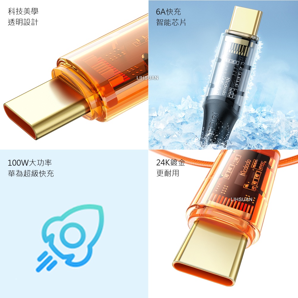 Mcdodo Type-C充電線傳輸線快充線閃充線 6A快充 晶透 1.2M 麥多多